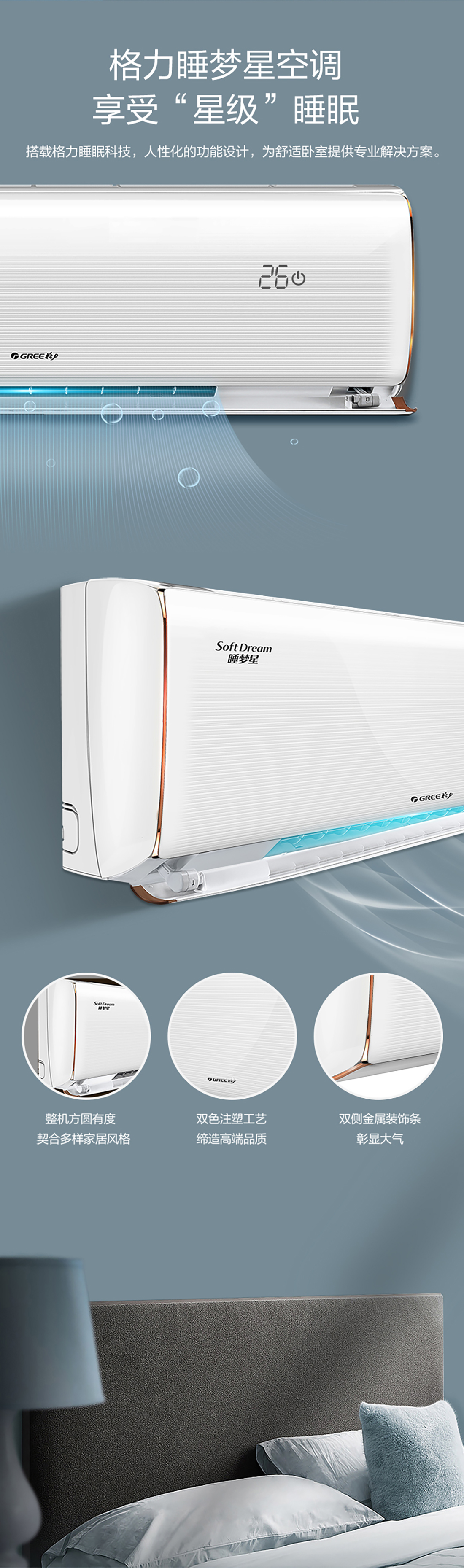 格力睡眠空調(diào),創(chuàng)新睡眠科技,集成4大技術(shù),拒絕聲、光干擾,營造衡溫不擾眠的舒適睡眠環(huán)境,舒睡一整晚。