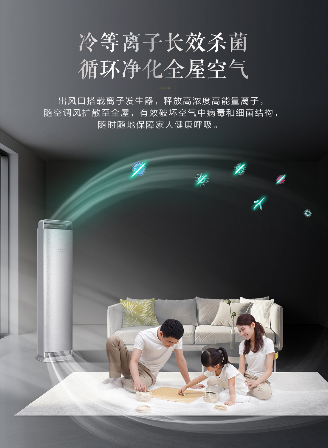 主要特點(diǎn):分布式送風(fēng) 冷等離子殺菌 第二代格力冷酷外機(jī) 格力+APP